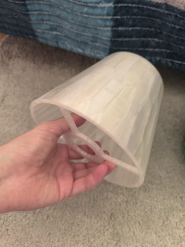 Ten elegancki abażur został wykonany w technologii druku 3D z półprzezroczystego tworzywa, które delikatnie rozprasza światło, tworząc przytulną atmosferę w pomieszczeniu. Jego subtelna faktura i geometryczna forma sprawdzą się zarówno w nowoczesnych, jak i klasycznych wnętrzach.
