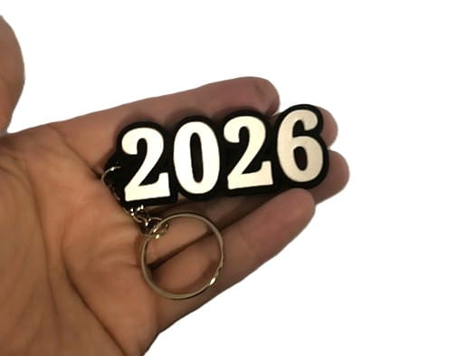 Oryginalny brelok z napisem 2026, wykonany techniką druku 3D