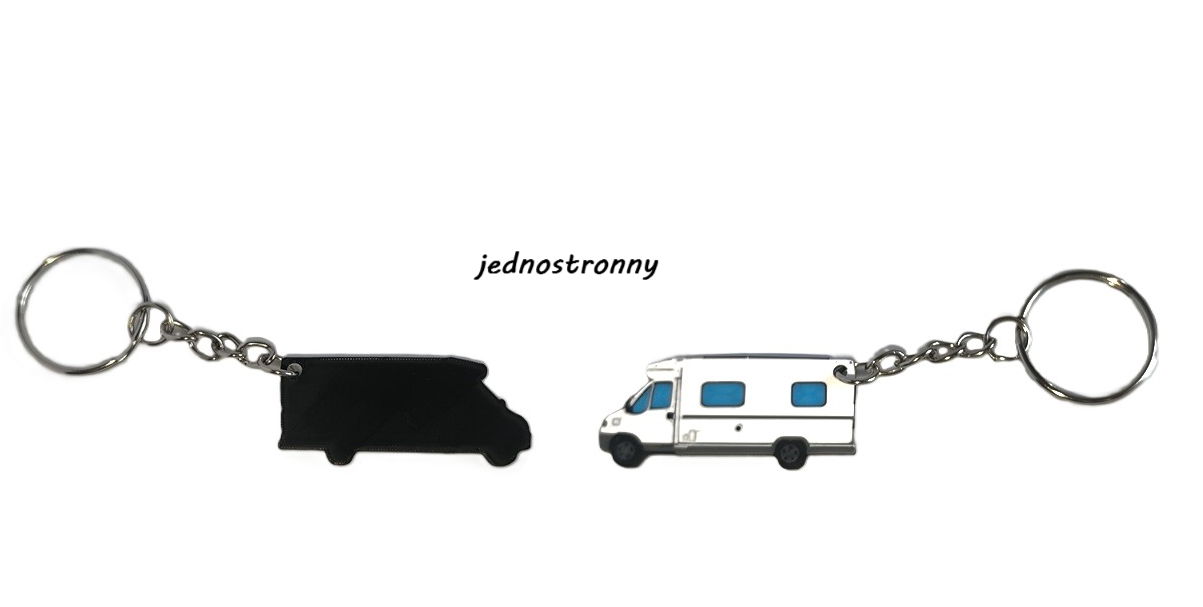 - Materiał: lekki, trwały filament PLA (druk 3D), wyposażony w solidny metalowy łańcuszek i kółko na klucze.