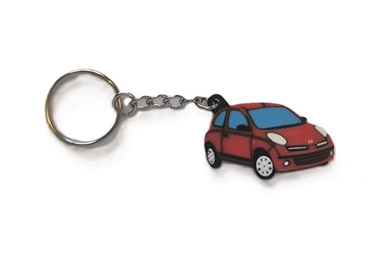 Brelok inspirowany trzecią generacją Nissana Micry (K12) – popularnego miejskiego auta produkowanego w latach 2003–2010.