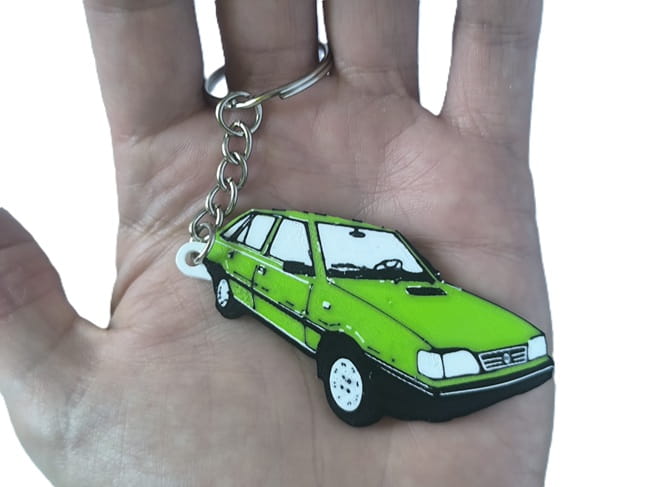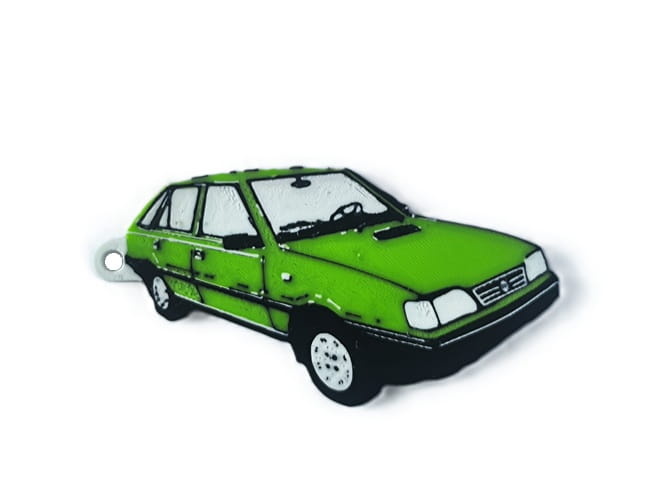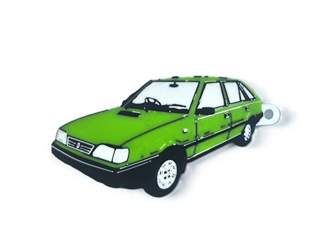 Wykonany z wytrzymałego filamentu w technologii druku 3D, brelok zachwyca odwzorowaniem detali i intensywną kolorystyką. To idealny dodatek dla fanów klasycznej motoryzacji i każdego, kto ceni niepowtarzalny klimat lat 90.