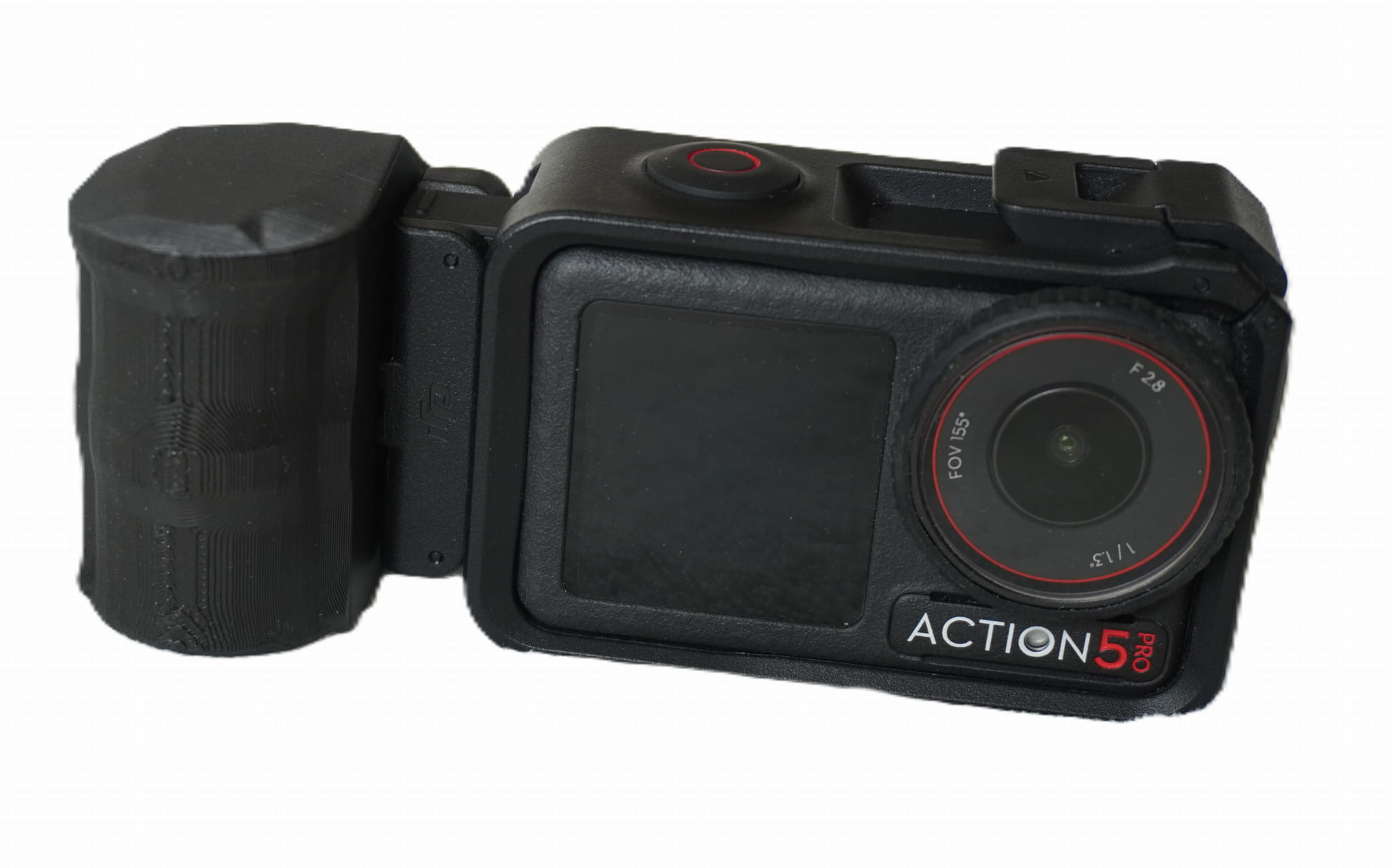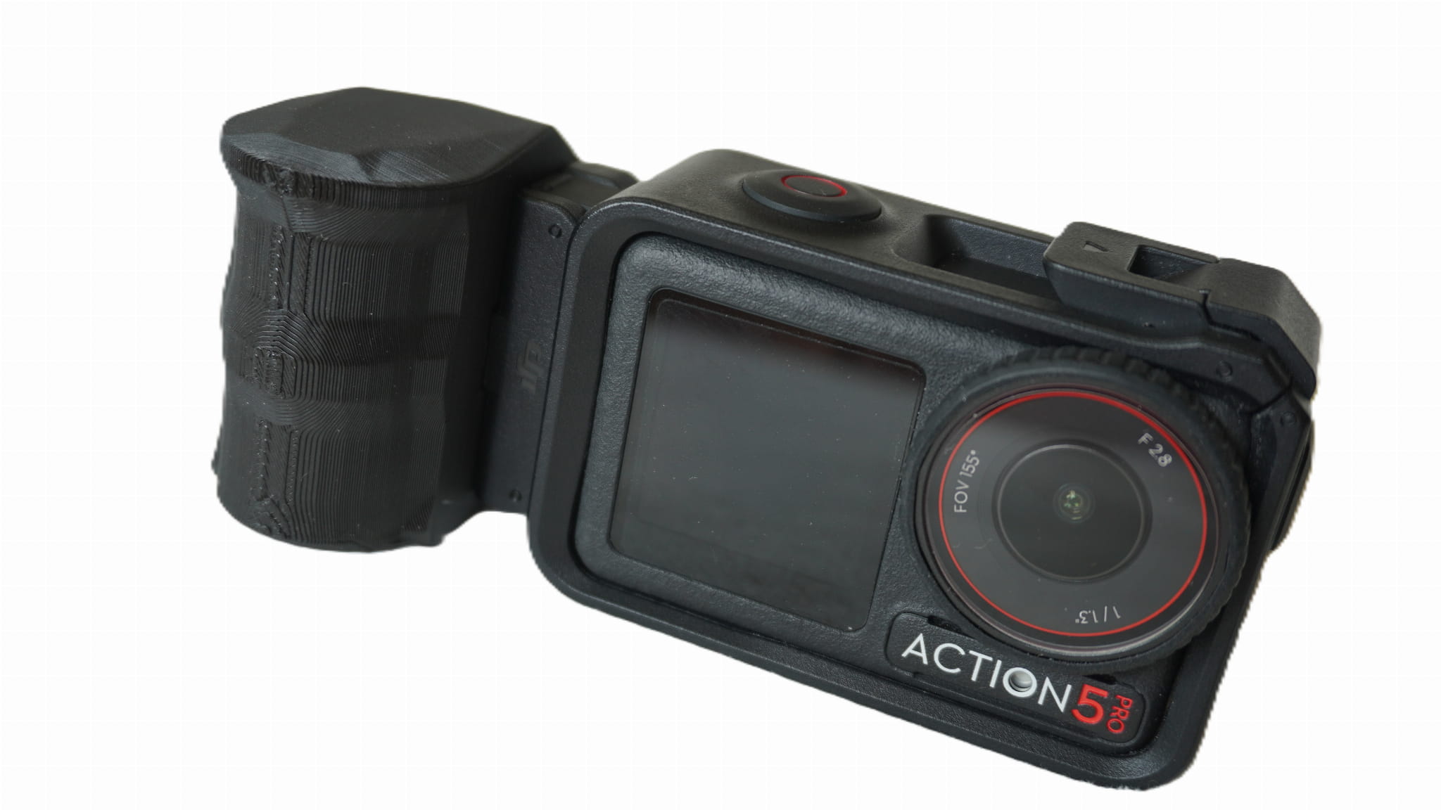 Aby zamontować grip, niezbędna jest obudowa do DJI Action 5 z możliwością przypięcia magnetycznego uchwytu z prawej strony, a także sam magnetyczny uchwyt z mocowaniem typu GoPro. Dzięki temu rozwiązaniu montaż jest szybki i wygodny, a całość trzyma się pewnie bez potrzeby używania śrub.