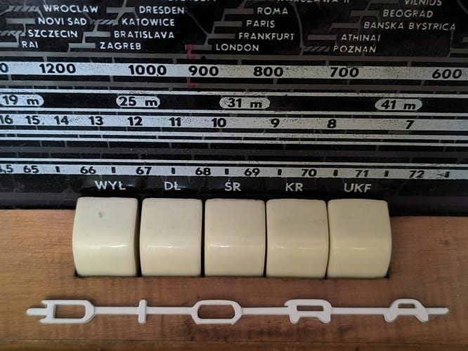 Napis - logo DIORA pasujący do odbiornika lampowego Menuet.