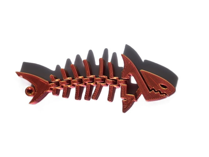 Ten wyjątkowy rekin w formie rybiego szkieletu to nie tylko ozdoba, ale i zabawka antystresowa. Dzięki segmentowanej budowie wszystkie elementy są ruchome, co sprawia, że możesz go zginać, poruszać i ustawiać w dowolnych pozycjach. Wykonany z połyskującego materiału 3D w odcieniach czerwieni i czerni, przyciąga wzrok i robi wrażenie w każdej kolekcji.