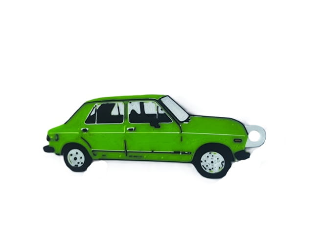 Stylowy brelok przedstawiający kultowy samochód Zastava 1100, produkowany w latach 70. i 80. – pojazd, który do dziś budzi sentyment wśród miłośników motoryzacji z epoki PRL.