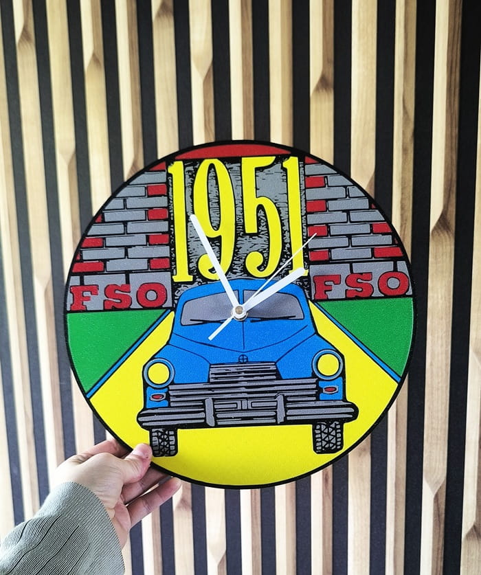 Zegar doskonale sprawdzi się jako dekoracja do salonu, biura, garażu, warsztatu lub pokoju fana klasycznych samochodów. To również świetny pomysł na prezent dla miłośników PRL i historii motoryzacji.