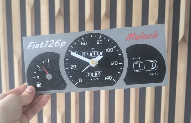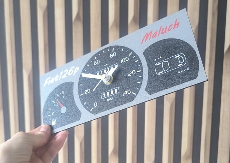 Ten wyjątkowy zegar to hołd dla legendy polskich dróg – Fiata 126p. Zaprojektowany na wzór kultowego prędkościomierza z lat 90., przeniesie Cię w czasy, gdy na parkingach królowały klasyczne polskie auta, a zapach benzyny unosił się wszędzie.