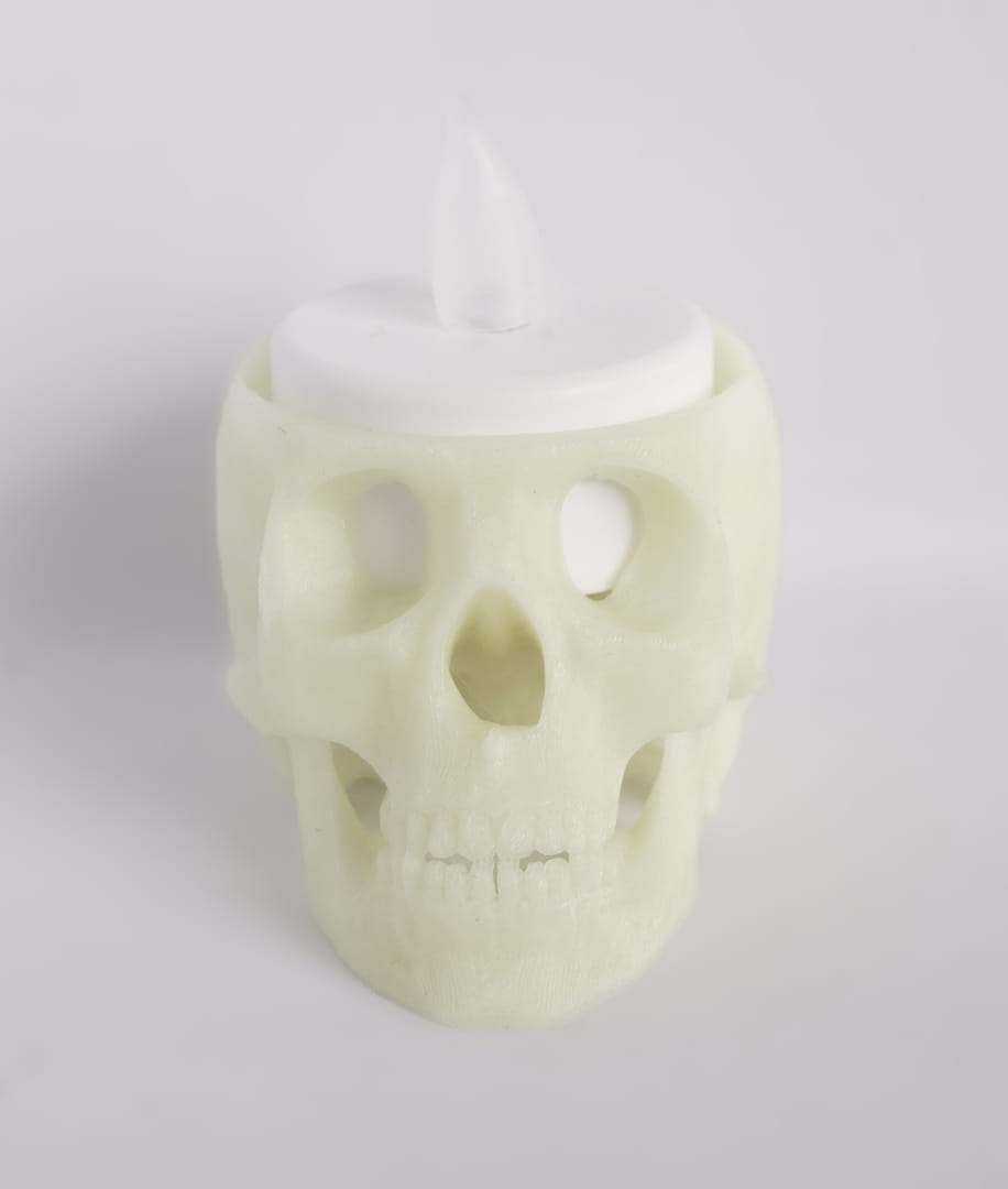 Po umieszczeniu w środku świeczki LED czaszka rozświetla się i tworzy niesamowity, klimatyczny efekt – idealny na Halloween, imprezy tematyczne, albo jako oryginalna ozdoba do domu. Dzięki zastosowaniu świecącego filamentu PLA, nawet po zgaszeniu światła model subtelnie świeci w ciemności.