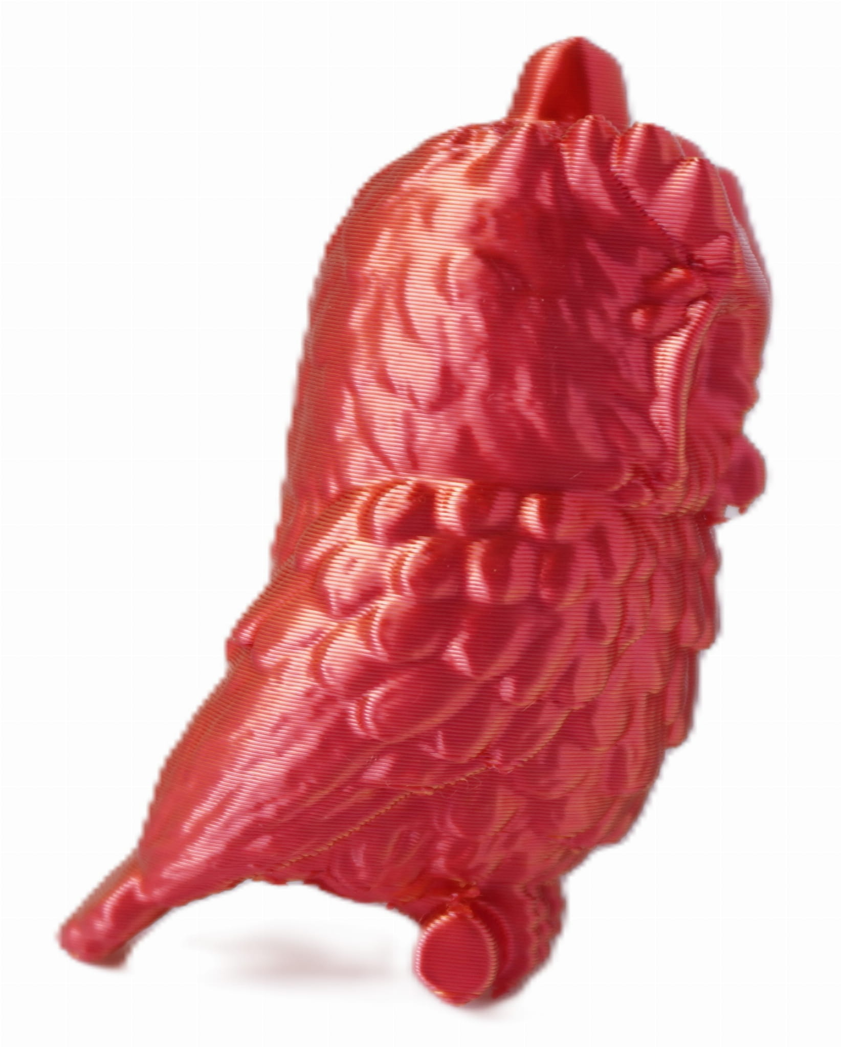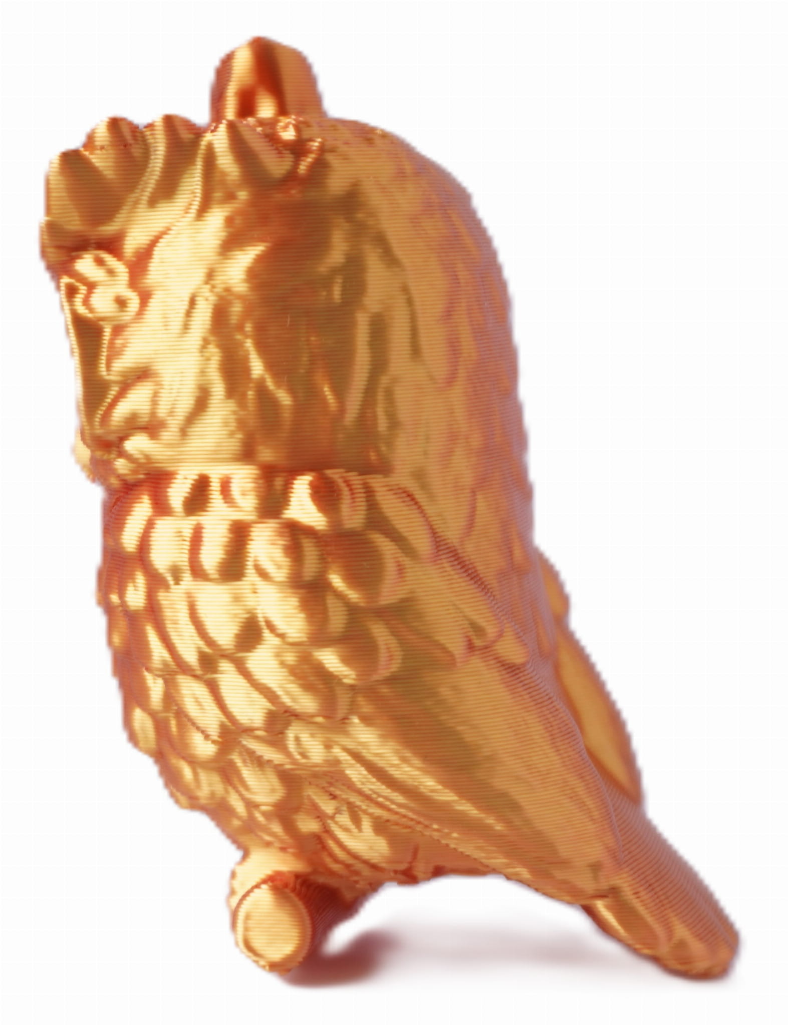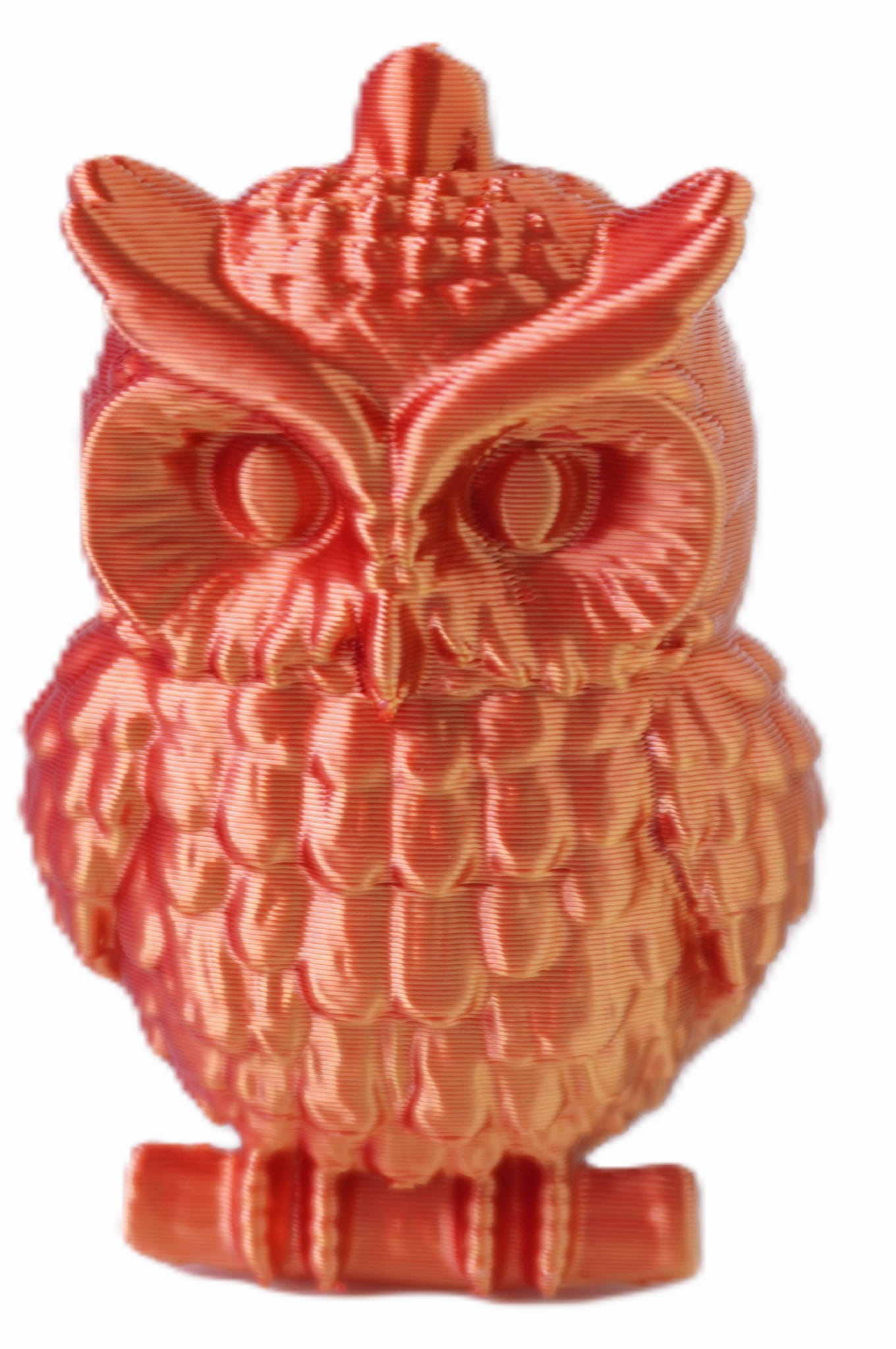 Ta szczegółowo wykonana figurka sowy została wydrukowana w technologii 3D z dwukolorowego filamentu PLA, który płynnie łączy odcienie czerwieni i złota. Efekt? Elegancki, metaliczny połysk i unikalne wykończenie, które sprawia, że każda sztuka wygląda nieco inaczej.