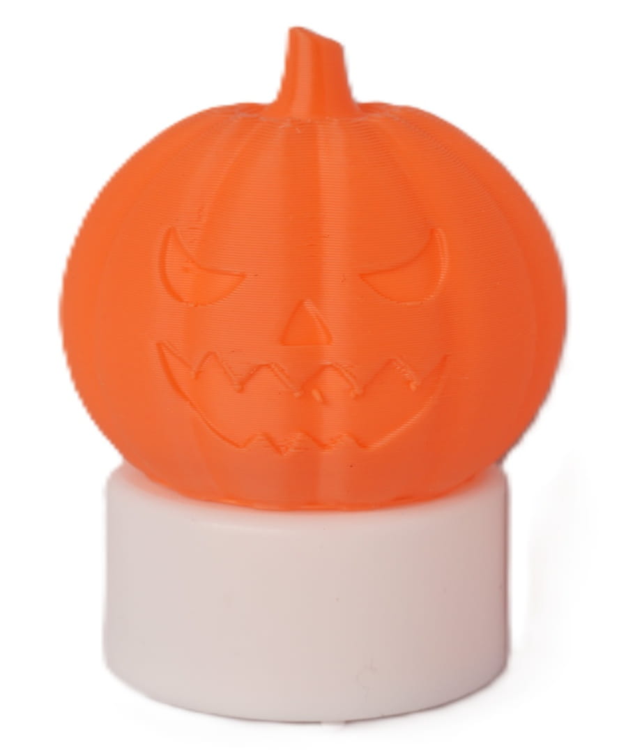 Taniej w zestawie!Pomarańczowa dynia z groźnym grymasem – świecznik na podgrzewacz LED (bez otworów).